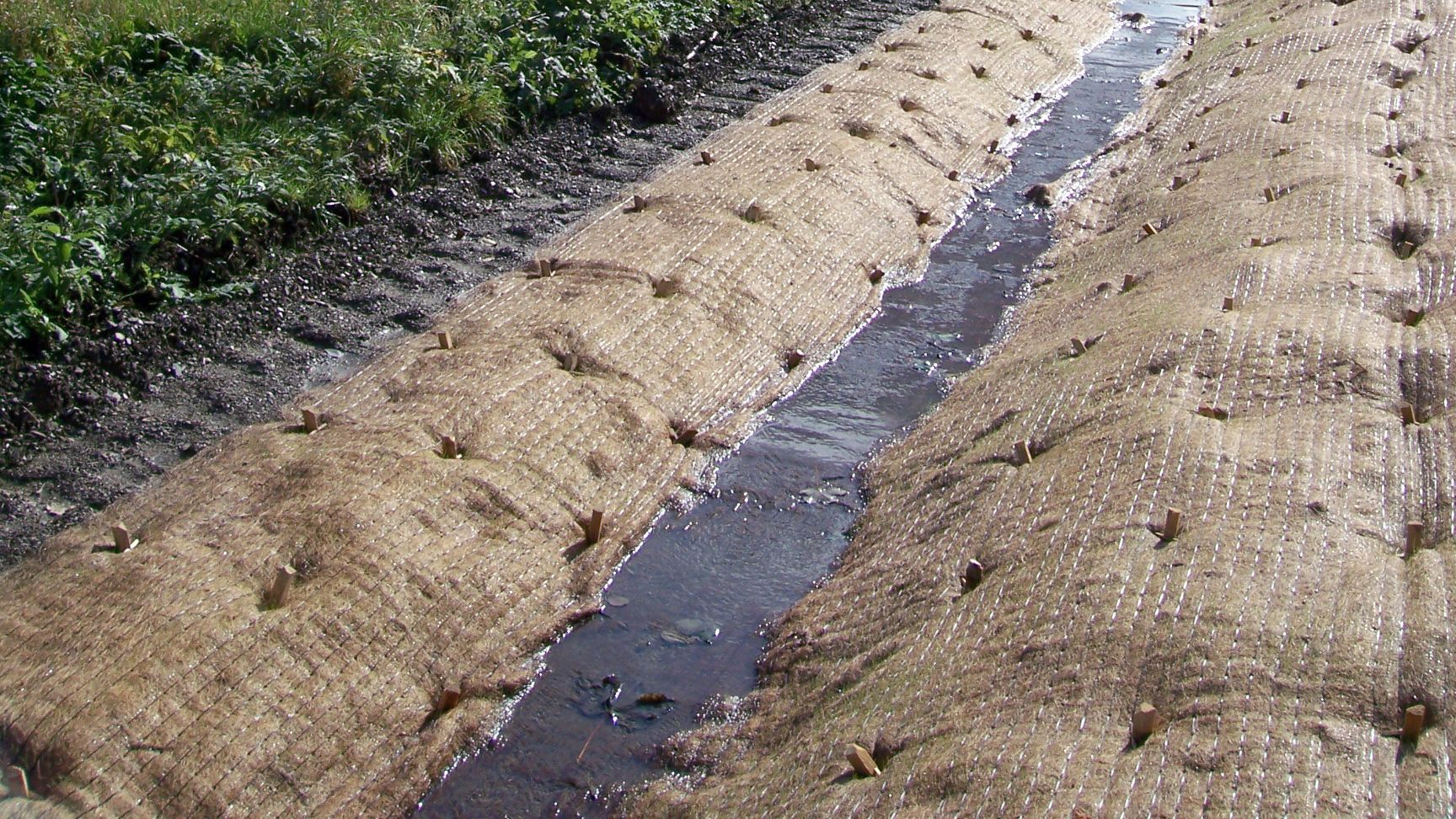 Die Sicherungsmethode mit Kokosgewebe ist ein sicherer Erosionsschutz an kleinen Gewässern. Die Methode ist preiswert und unkompliziert in der Ausführung. Die Begrünung erfolgt durch Einsaat. Gehölzpflanzungen sind in diesen Bereichen etwas aufwendiger.