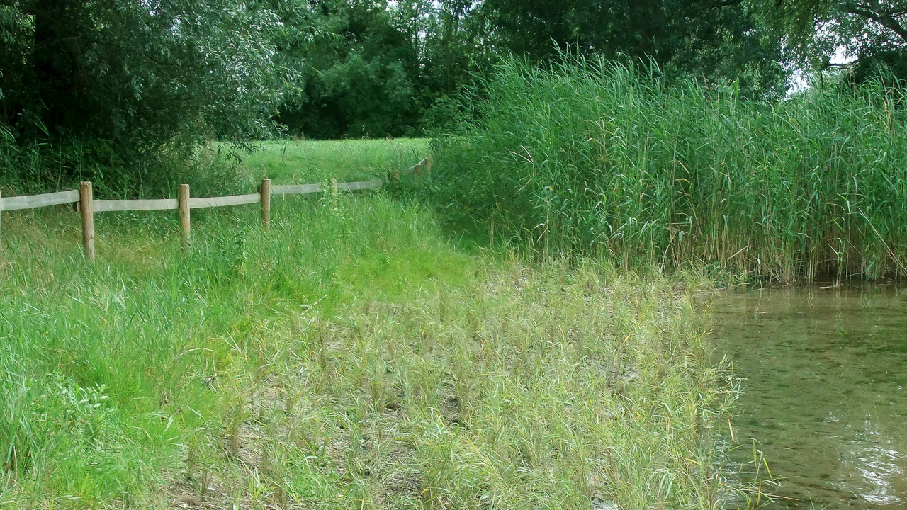 Pflegemaßnahmen sind bei einer Initialpflanzung mit Röhrichtballen nicht notwendig. Um den Erfolg sicherzustellen, sollte die Pflanzung aber regelmäßig auf Treibgut oder Anzeichen von Vertritt und Verbiss kontrolliert werden.