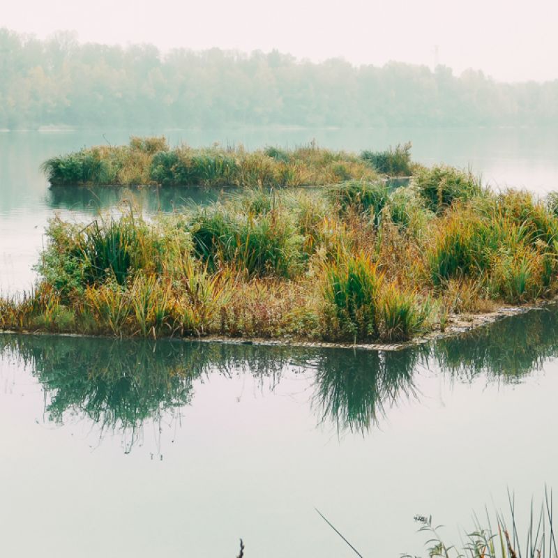 Unsere Röhrichtinseln mit Kork oder mit Geogitter schaffen Trittsteinbiotope für Gewässer und leisten durch die hoch produktiven Lebensräume einen wichtigen Beitrag zum Artenschutz und zur Biodiversität. Die bepflanzten Inseln bringen harte Uferkanten in unseren Städten zum Erblühen und sind eine fortschrittliche und natürliche Methode zur Förderung der biologischen Wasserreinigung.