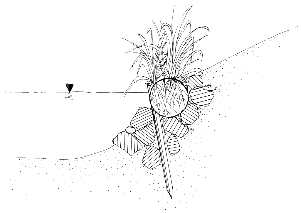 Pro Walze (3 Meter) werden 2 – 3 verschiedene Röhrichtarten gepflanzt. Dazu können, je nach geplantem Einbauort, attraktiv blühende Pflanzen kommen, die allerdings keinen wesentlichen Beitrag zur ingenieurbiologischen Sicherung leisten.